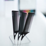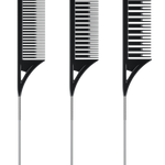 Each incredibly lightweight comb features a stainless-steel pintail for parting and sectioning.