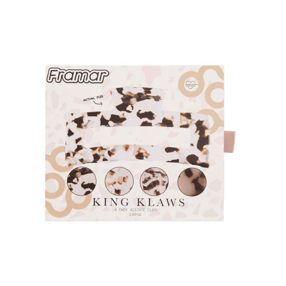 - Framar’s acetate claw clips come in 4 stunning neutral toned color variations, complimenting all hair types and an endless amount of hairstyles.